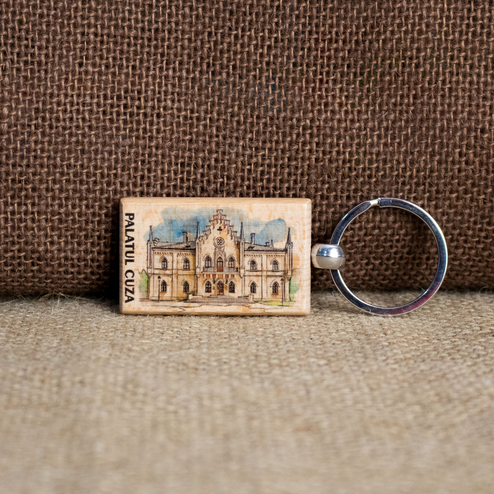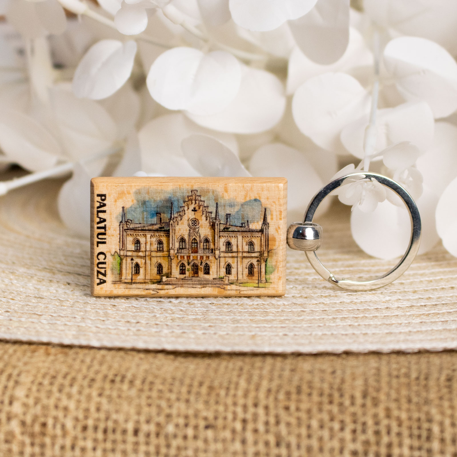 Breloc din lemn suvenir, Palatul Cuza, Ruginoasa – un suvenir care păstrează povestea vie!