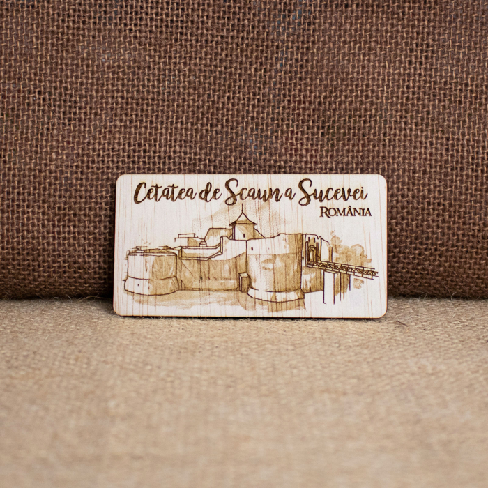 Dacă reprezinți un obiectiv turistic, un magazin de suveniruri, un hotel, o pensiune sau un magazin de artizanat, Magnet de frigider din lemn, gravat, Cetatea de Scaun a Sucevei poate fi o completare perfectă pentru oferta ta.