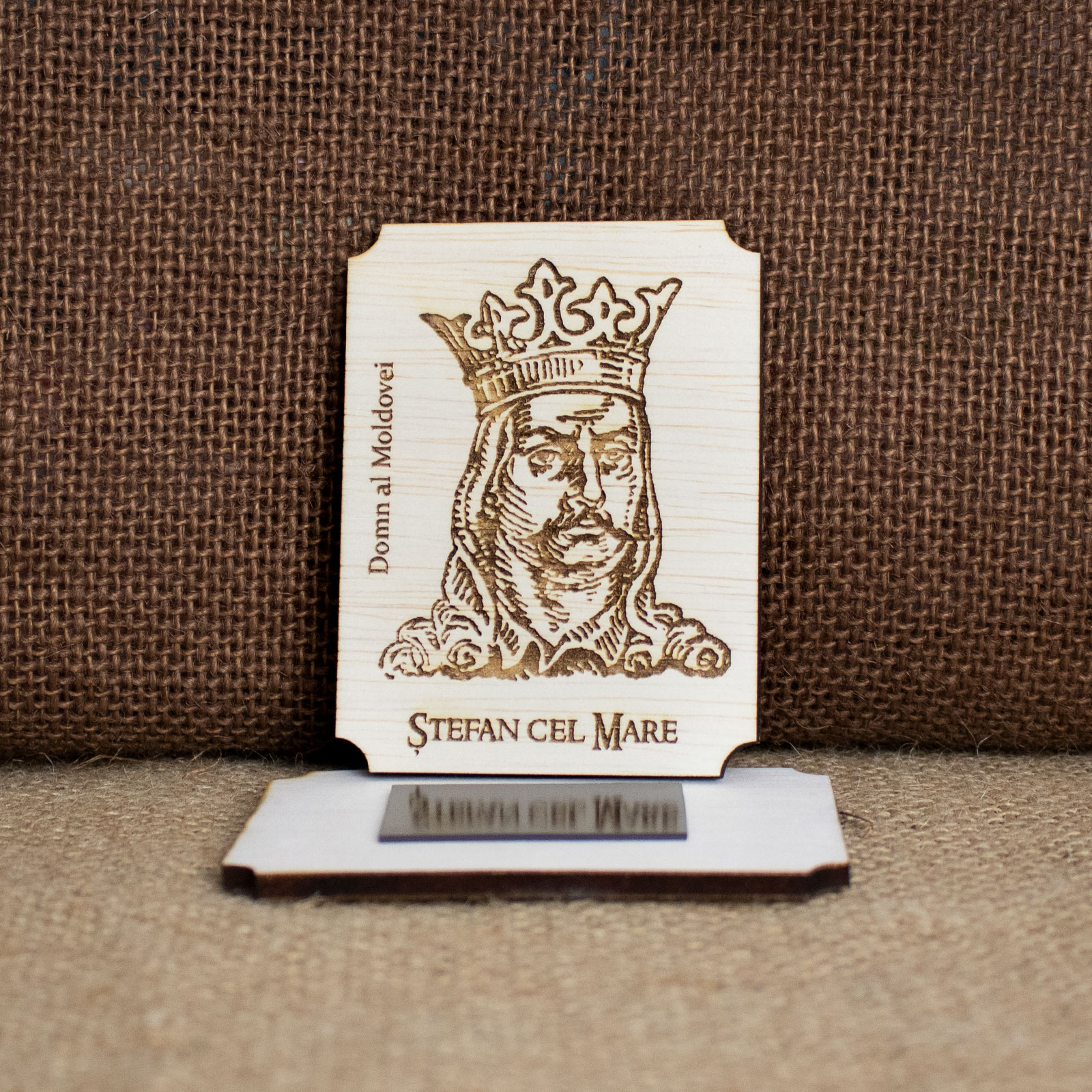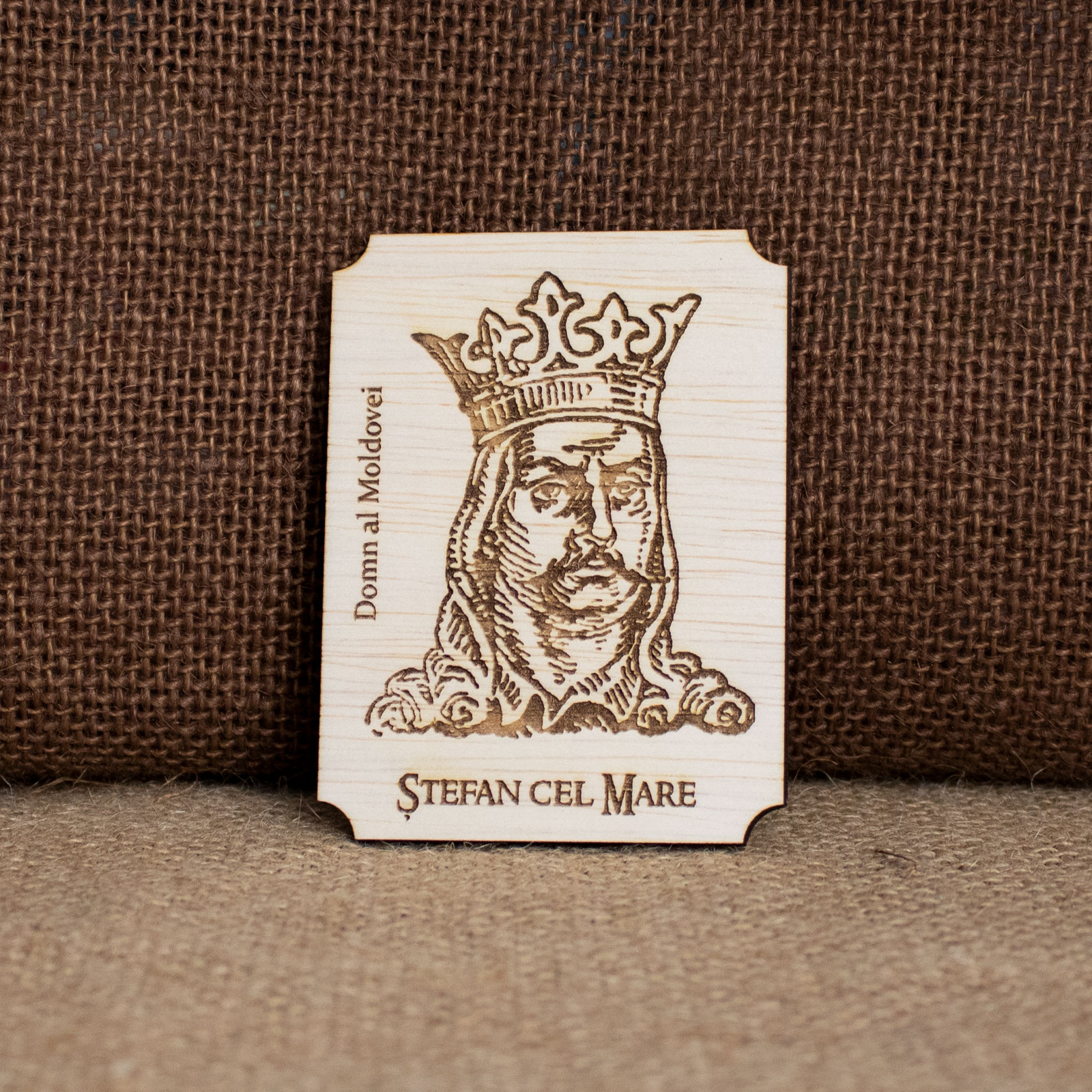 Produsul Magnet de frigider din lemn, gravat, Stefan cel Mare este realizat in atelierul Craftlaser din Oradea