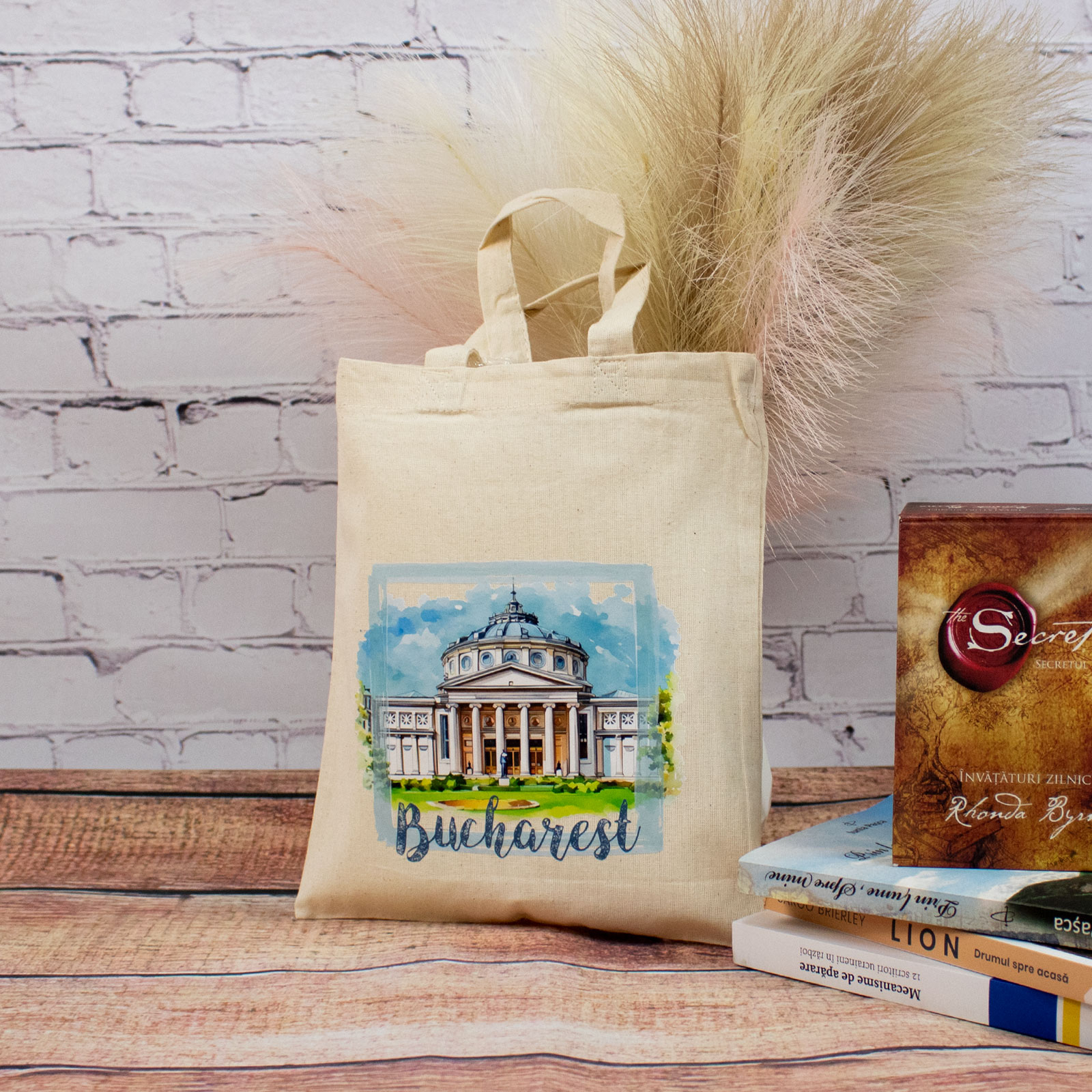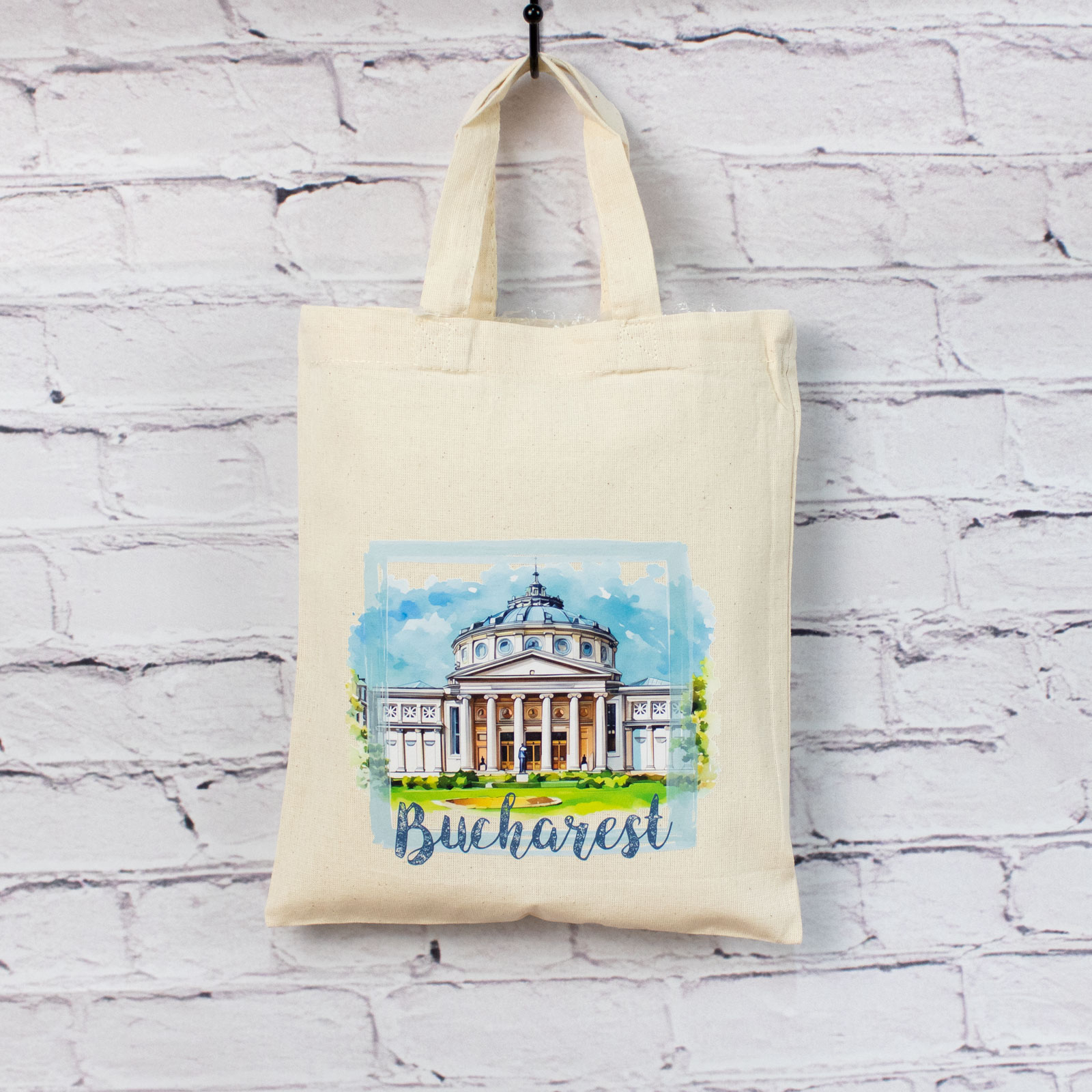 Sacosa din bumbac, suvenir, Ateneul Roman, Bucuresti, dimensiune 22 x 26 cm este realizat din bumbac brut, atent alese pentru durabilitate și utilizare zilnică.