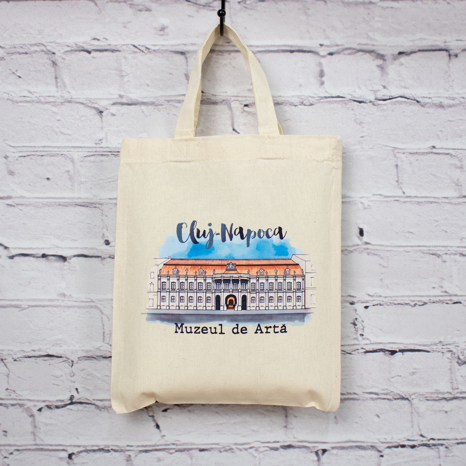 Sacosa din bumbac, suvenir, Muzeul de Arta Cluj Napoca, dimensiune 22 x 26 cm este realizat din bumbac 100%, 140 gr., atent alese pentru durabilitate și utilizare zilnică.