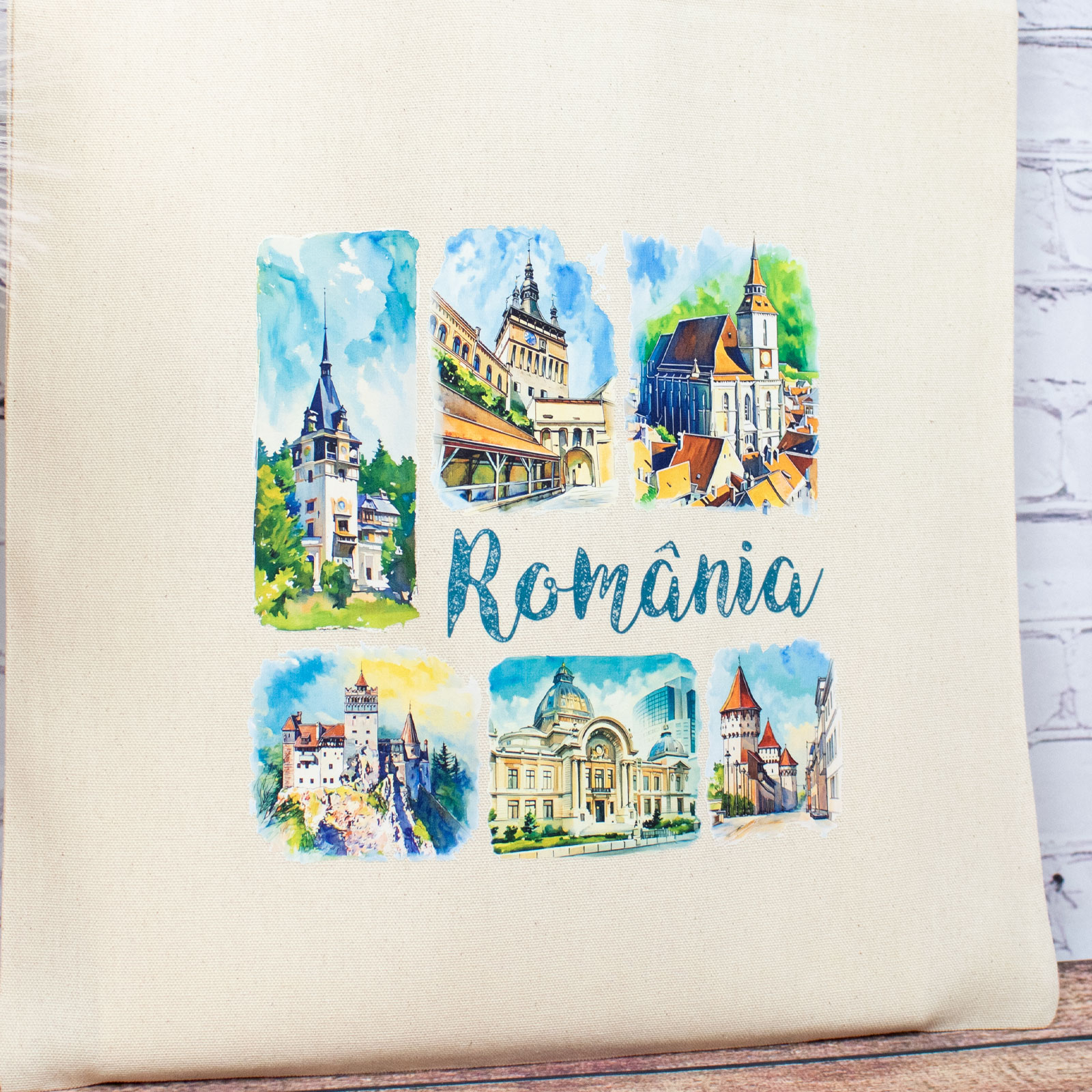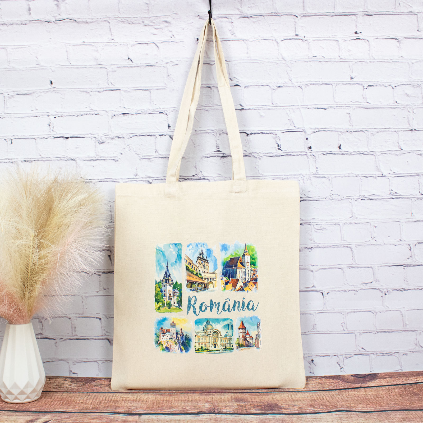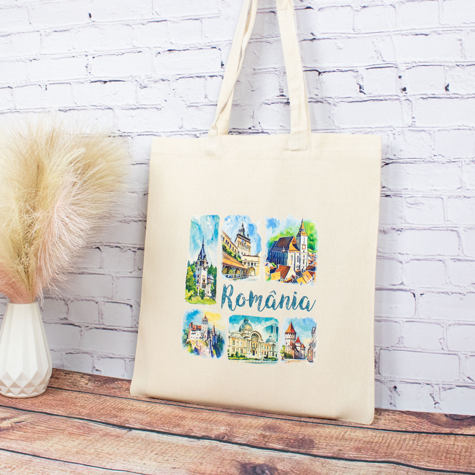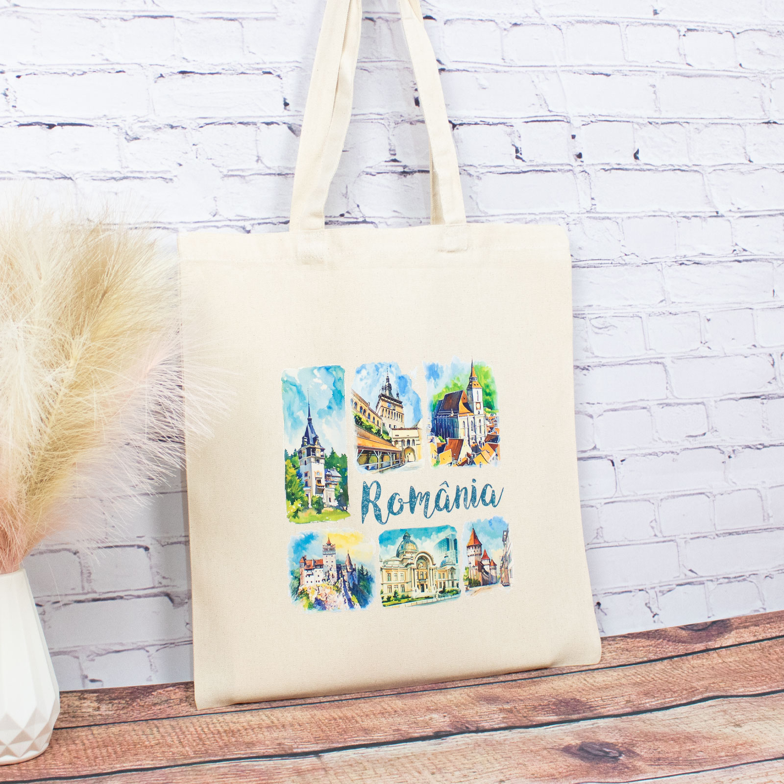 Sacosa din bumbac, suvenir, Visit Romania - un suvenir care păstrează povestea vie!