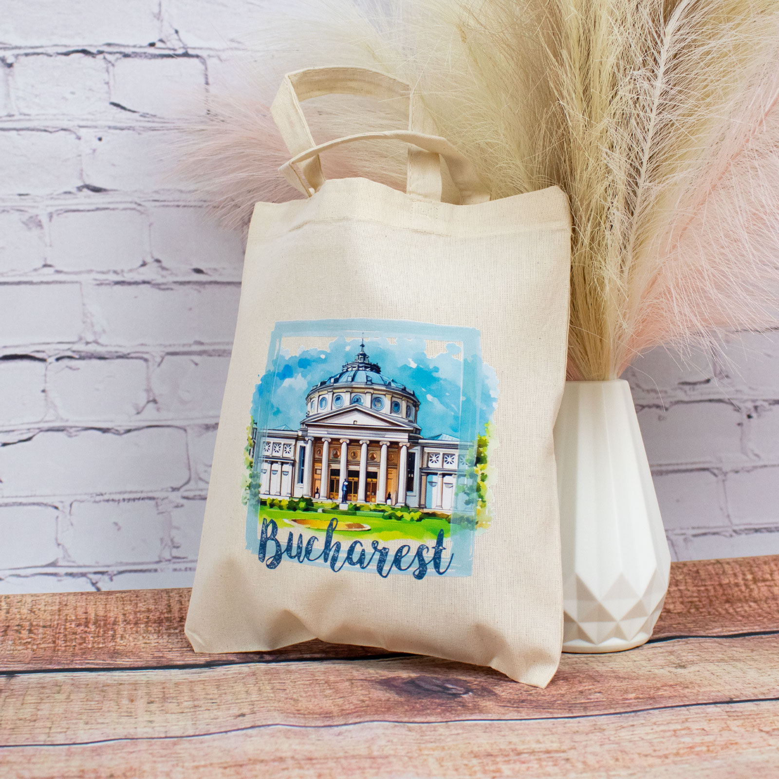 Dacă reprezinți un obiectiv turistic, un magazin de suveniruri sau un magazin de artizanat, Sacosa din bumbac, suvenir, Ateneul Roman, Bucuresti, dimensiune 22 x 26 cm poate fi o completare perfectă pentru oferta ta.