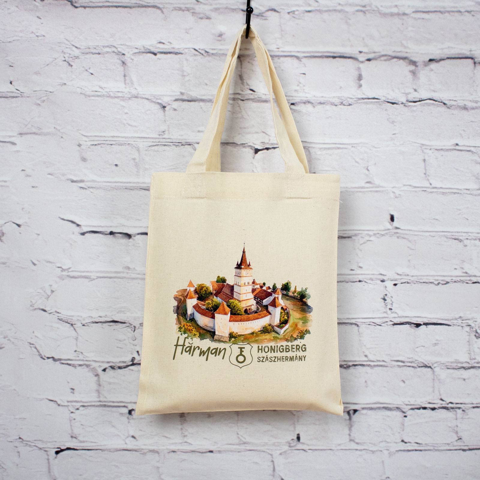 Sacosa din bumbac, suvenir, Biserica Evanghelica Fortificata Hărman, dimensiune 22 x 26 cm este realizata din materiale naturale, respectiv bumbac 100%, materiale atent alese pentru durabilitate și utilizare zilnică.