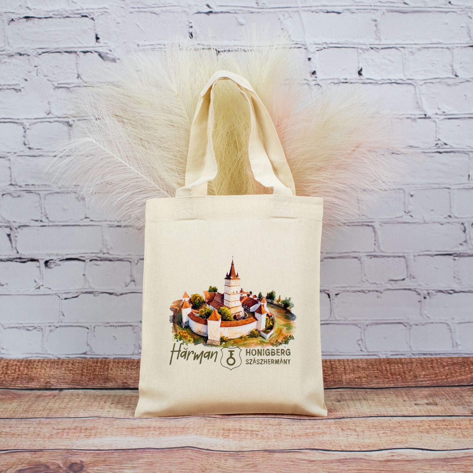 Sacosa din bumbac, suvenir, Biserica Evanghelica Fortificata Hărman, dimensiune 22 x 26 cm este realizata local, în atelierul Craftlaser din Oradea, din materiale naturale, folosind tehnici de printare durabile.